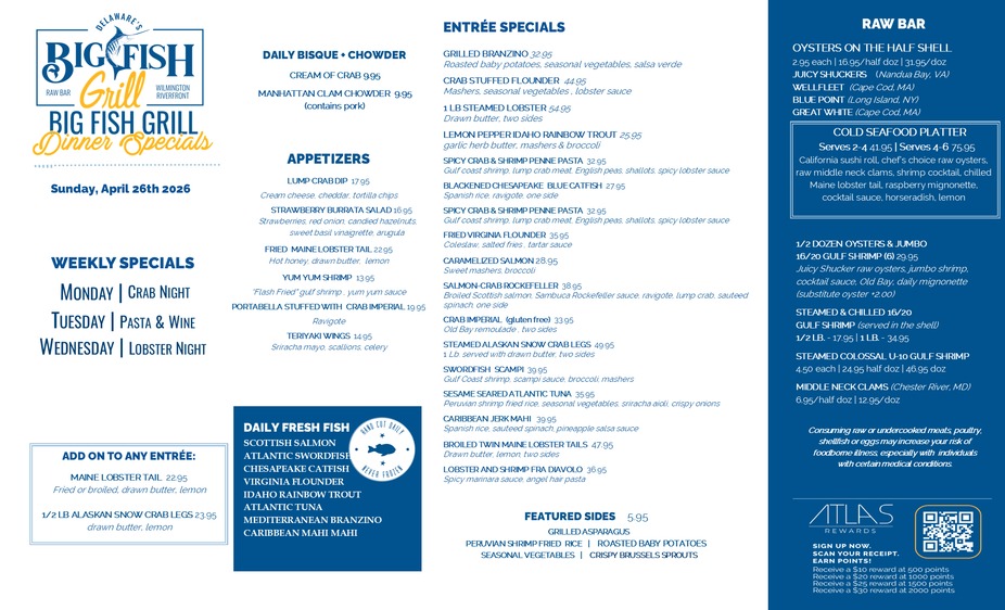 11:30am-9pmBig Fish Dinner Specials 4/26/26Sunday, April 26th, 2026