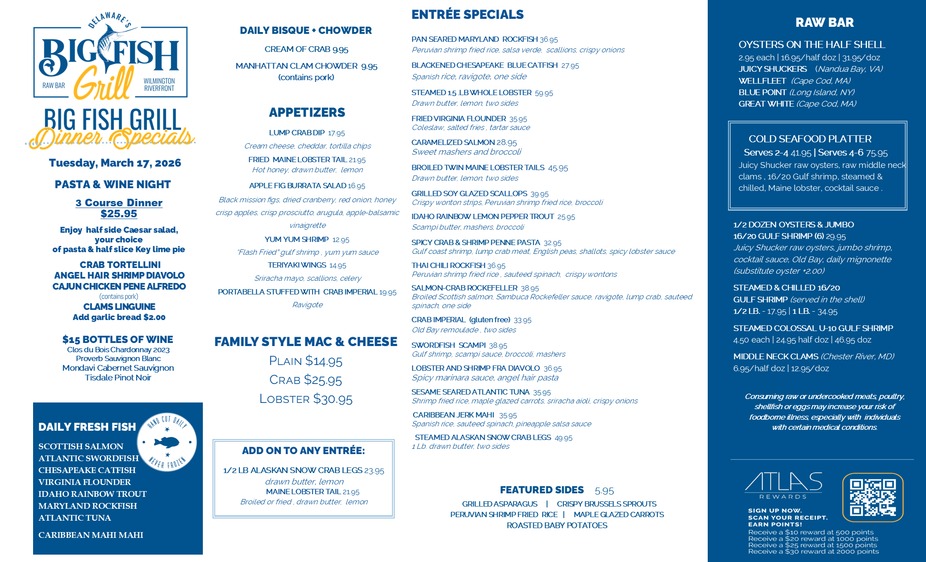 Big Fish Dinner Specials 3.17.26