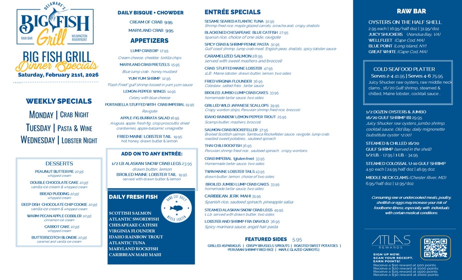 Big Fish Dinner Specials 2.21.26