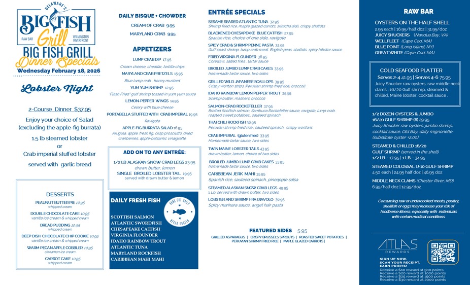 Big Fish Dinner Specials 2/18/26