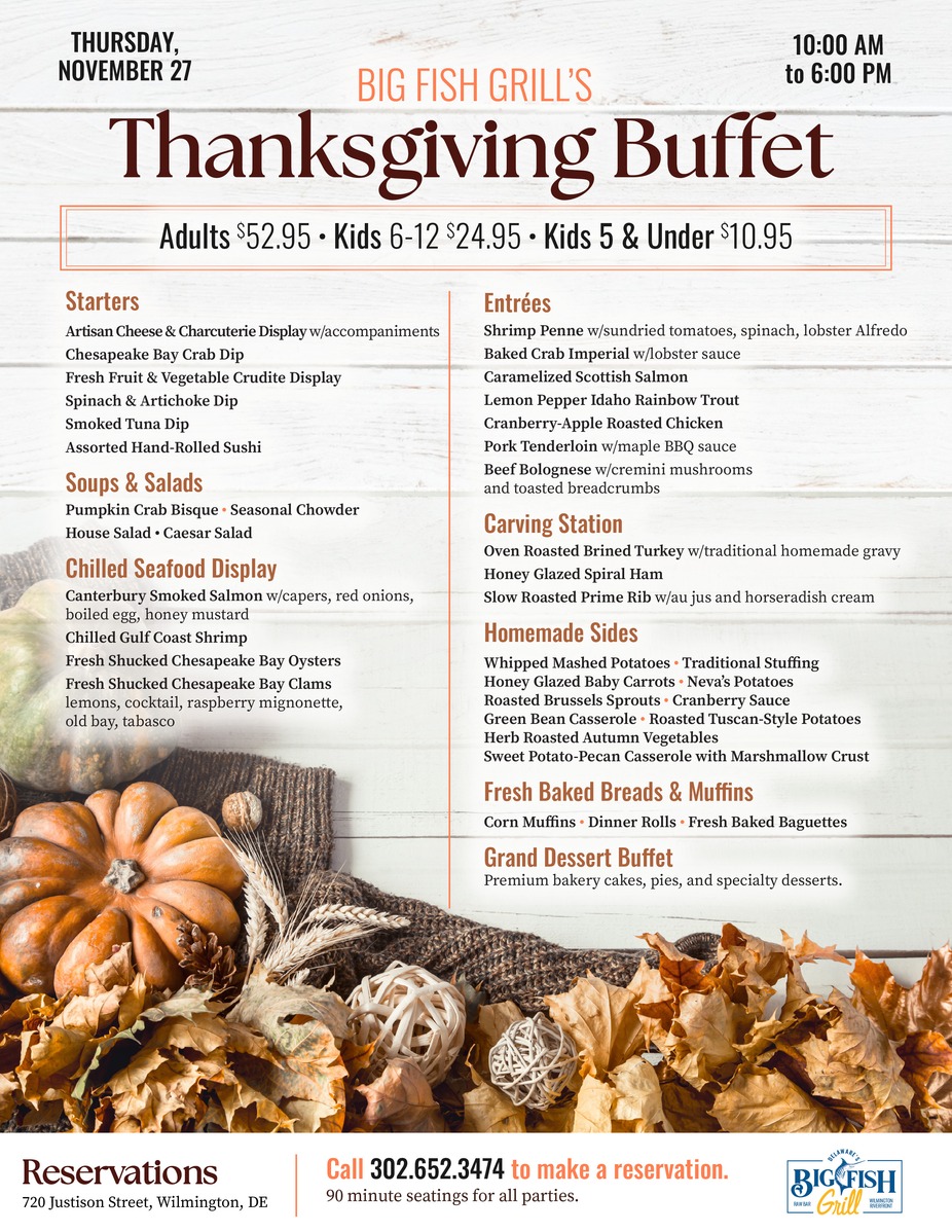 Order online at bigfishriverfront.store! All orders must be placed by Friday, December 19th for Christmas Eve pick-up. Our hours on Christmas Eve are 11:30AM - 8PM. We are closed on Christmas Day.