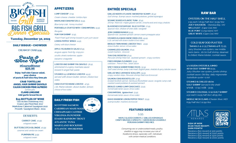 4pm-9pmBig Fish Dinner Specials 12.30.25Tuesday, December 30th, 2025