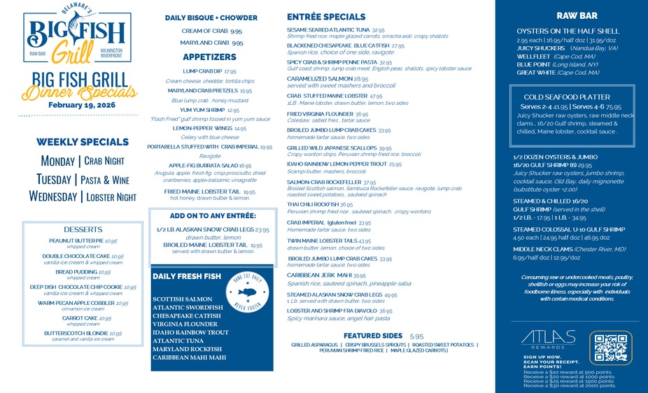 11:30am-4pmBig Fish Lunch Specials 2.19.2026Thursday, February 19th, 2026