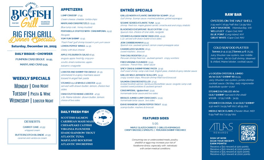 11:30am-9:30pmBig Fish SpecialsSaturday, December 20th, 2025
