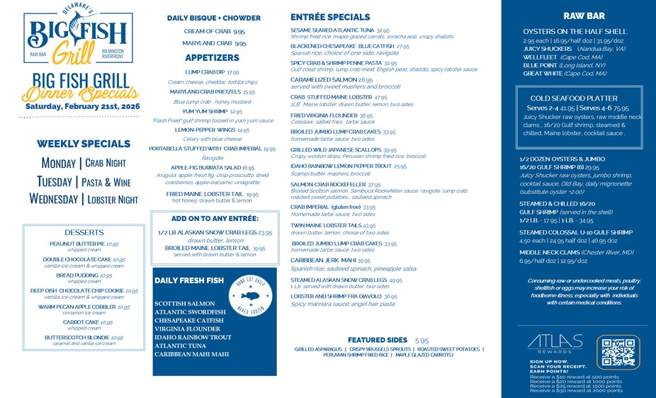 Big Fish Dinner Specials 2.21.26