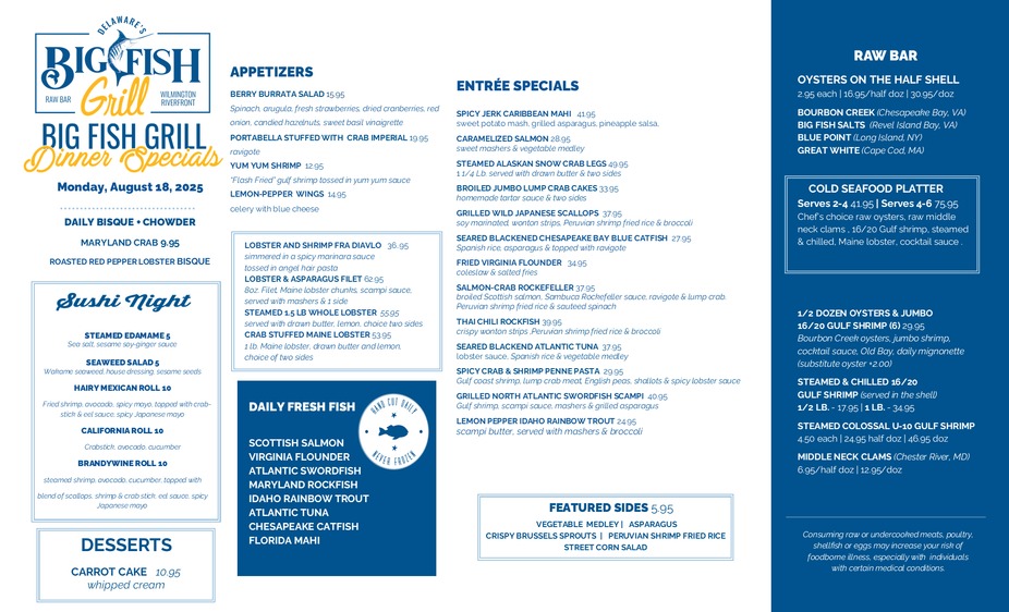 Big Fish Dinner Specials 12.30.25